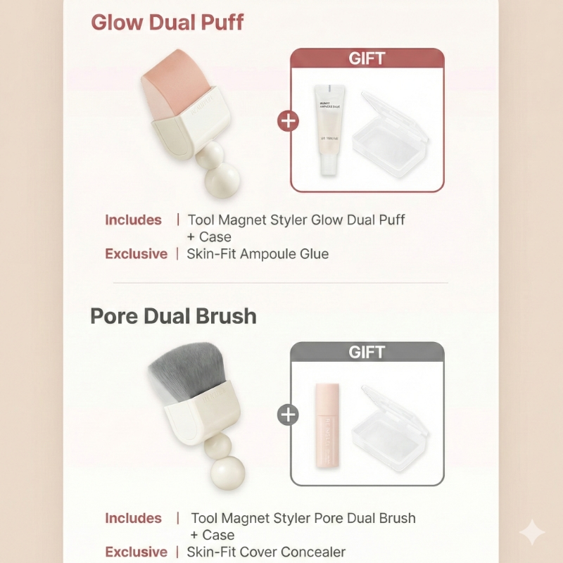 | Type | [SET] Glow Dual Puff (+Case, Primer), [SET] Pore Dual Brush (+Case, Concealer) |
