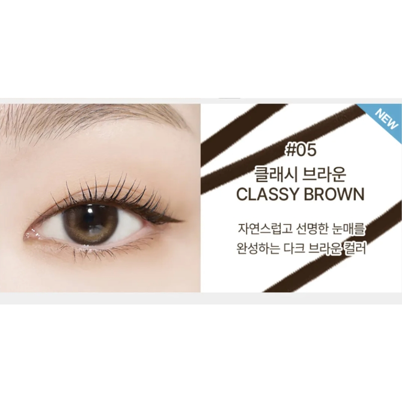 This liquid pen liner is a staple K-beauty tool designed for effortless, precise lining and a soft, muted color payoff that’s perfect for a natural yet defined eye look. The shade #5 Classy Brown offers a refined, natural brown tone that is softer than black, giving your eyes a delicate, sophisticated depth.