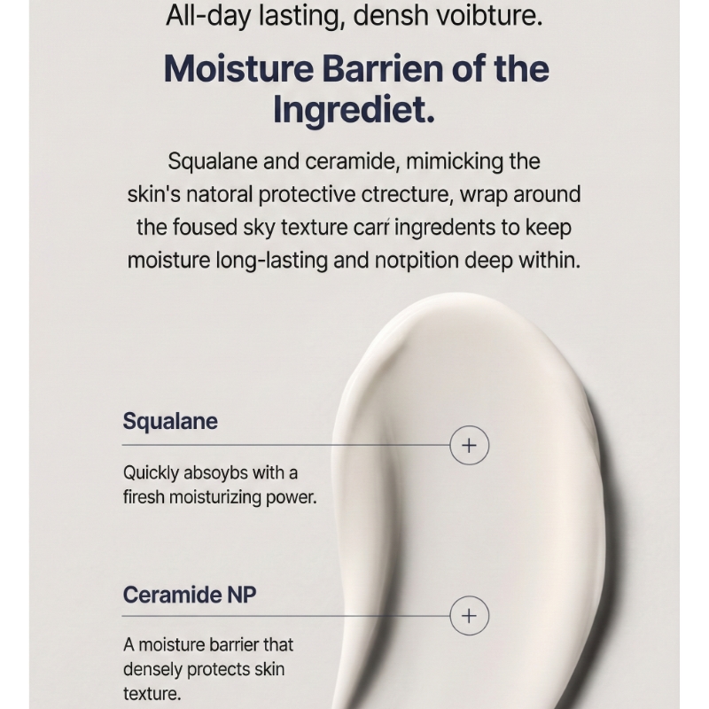 Water, Caprylic/Capric Triglyceride, Propanediol, Butylene Glycol, Glycerin, Coco-Caprylate/Caprate, Niacinamide, 1,2-Hexanediol, Fragrance, Polyglyceryl-3 Distearate, Methyl Trimethicone, Hydroxyethyl Acrylate/Sodium Acryloyldimethyl Taurate Copolymer, Cetearyl Alcohol, Cetyl Alcohol, Butyrospermum Parkii (Shea) Butter, Cetearyl Olivate, Synthetic Beeswax, Sorbitan Olivate, Isononyl Isononanoate, Arginine, Carbomer, Glyceryl Stearate Citrate, Xanthan Gum, Trehalose, Sorbitan Isostearate, Ethylhexylglycerin, Allantoin, Adenosine, Dipotassium Glycyrrhizate, Gardenia Florida Fruit Extract, Sodium Phytate, Squalane, Panthenol, Dextrin, Hydrolyzed Vegetable Protein, Ceramide NP, Psidium Guajava Leaf Extract, Sasa Quelpaertensis Extract, Copper Tripeptide-1, Acetyl Hexapeptide-8, Palmitoyl Tripeptide-1