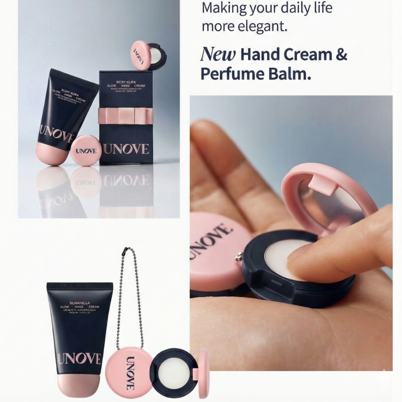 UNOVE Glow Hand Cream & Macaron Perfume Balm Set