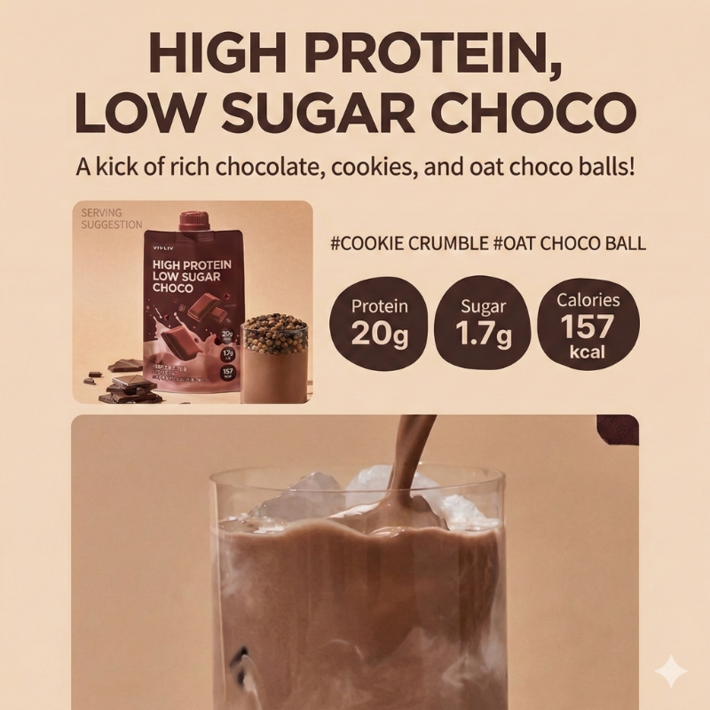 | Ingredients | Isolated Soy Protein 1 (Isolated Soy Protein, Lecithin) (USA), Whey Protein Concentrate Powder (Whey Protein Concentrate, Lecithin) (USA), Cocoa Powder (Indonesia), Isolated Soy Protein 2, Cookie Pieces (Wheat Flour, Sugar, Palm Shortening-S, Cocoa Powder, Corn Starch), Vegetable Cream 1, Vegetable Cream 2, Roasted Brown Rice Powder, Oat Choco Ball, Nondigestible Maltodextrin, Whey Protein Isolate Powder Mixed formulation (Dextrin, Propylene Glycol, Fragrance, Caramel Color II), Vitamin Mineral Blend Powder, Enzymatically Modified Stevia (Sweetener), Refined Salt, Concoction (L-Leucine, L-Valine,L-Lysine Hydrochloride, L-Phenylalanine, L-Threonine, L-Isoleucine, L-Histidine Hydrochloride, L-Methionine, L-Tryptophan, Lecithin), Cyamopsis Tetragonoloba (Guar) Gum, Momordica Grosvenorii Fruit Extract Powder, Sucralose (Sweetner) |