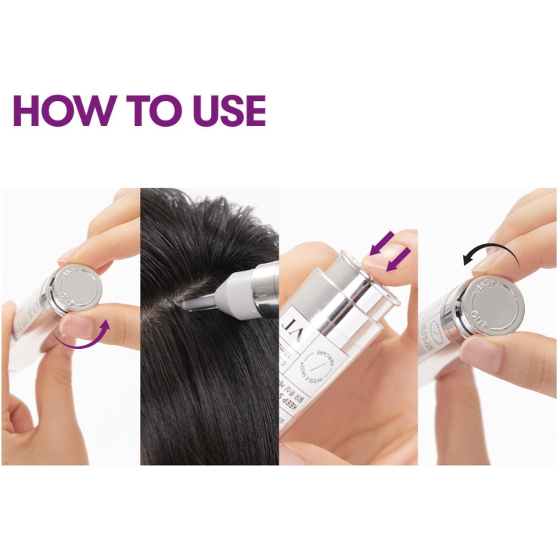 * Turn the bottom of the hair ampoule container to the left to open. After use, turn it to the right to close and store.