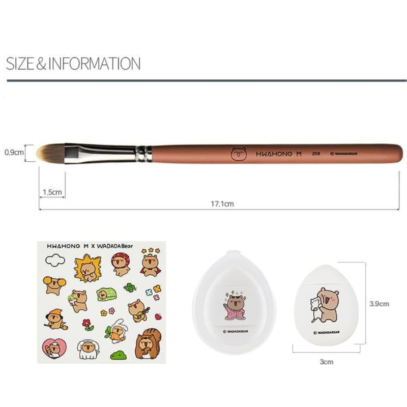 Wadadabear x HWAHONG M 258 Concealer Brush (+Finger puff 2ea + case + sticker)