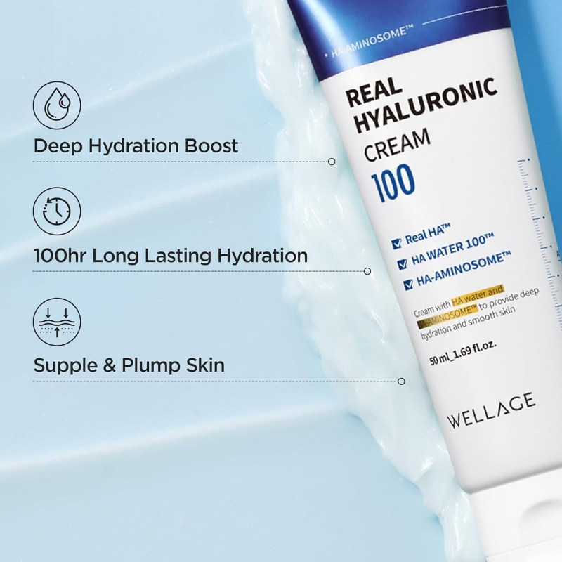 Wellage Real Hyaluronic Cream returns to improve inner skin dryness, delivering quick-dry filling, hydration & an explosion of moisturization.
